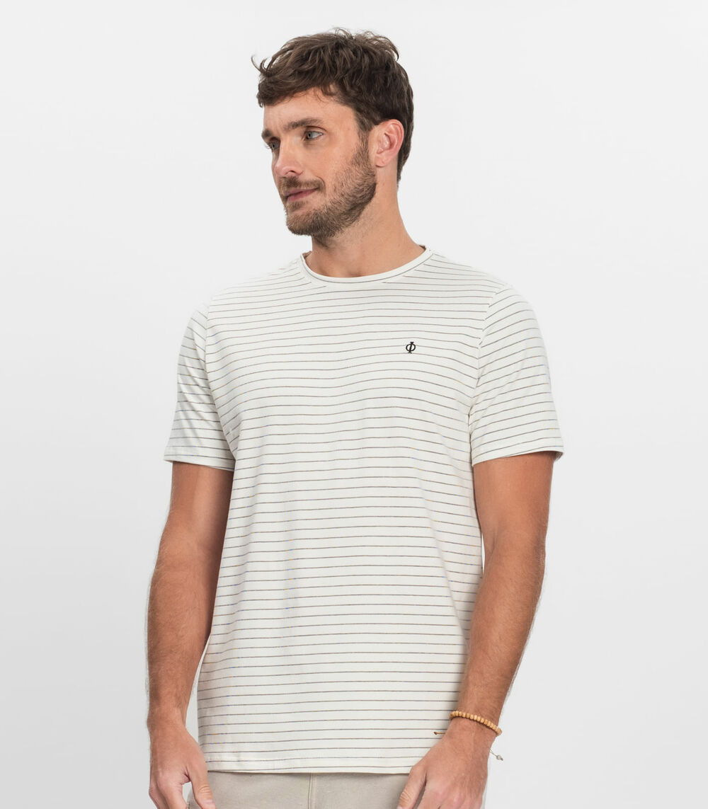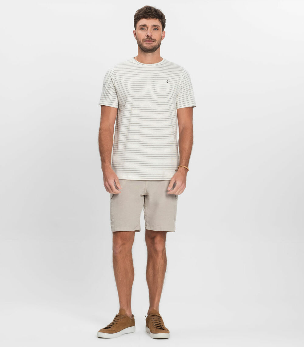 Camiseta Masculina Cotton Listrado Diametro Bege