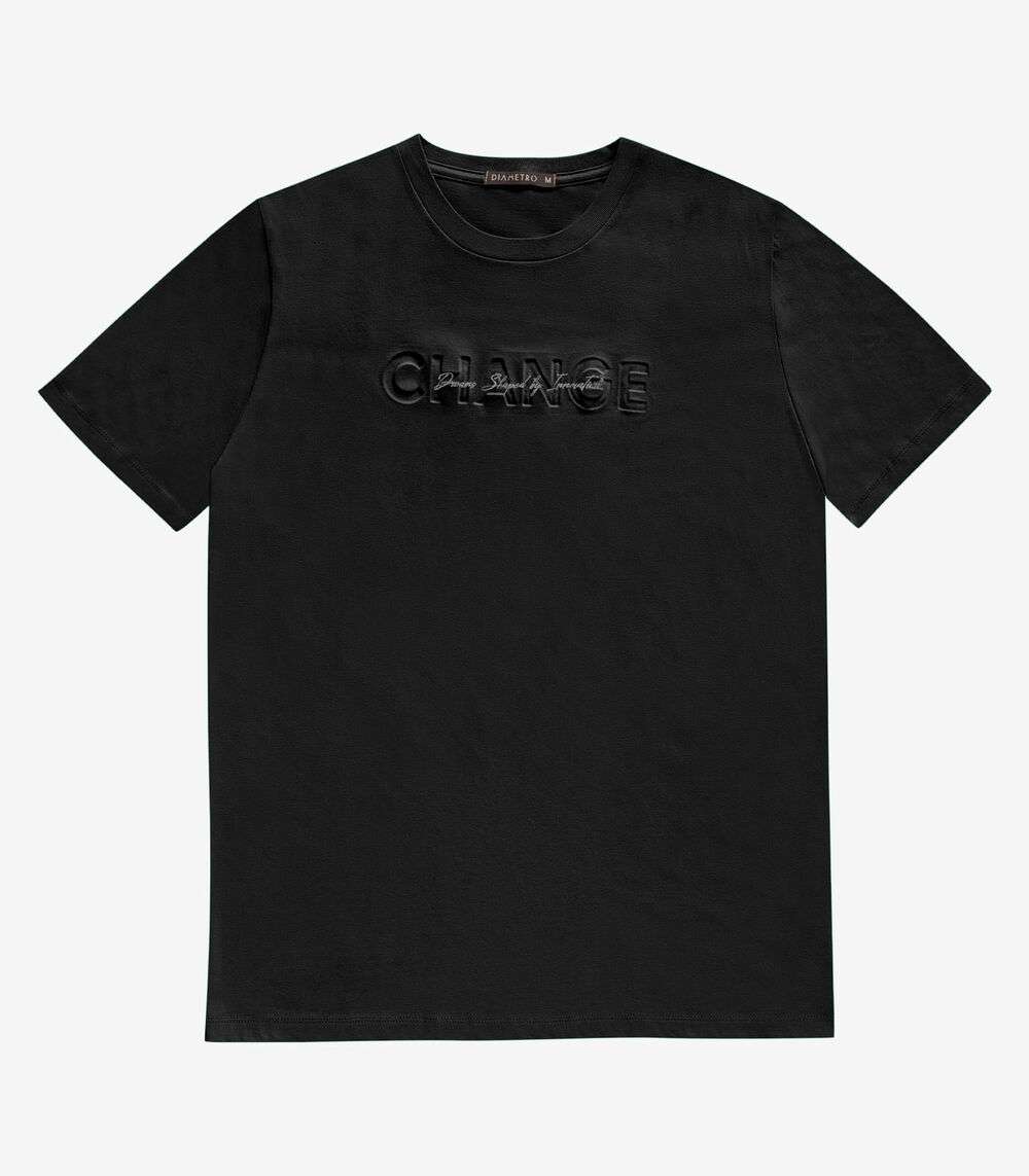 Camiseta Masculina Manga Curta Meia Malha Diametro Preto