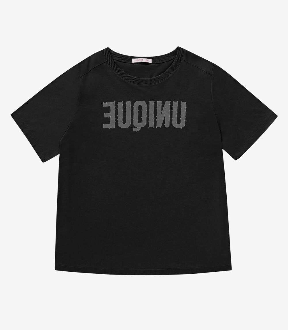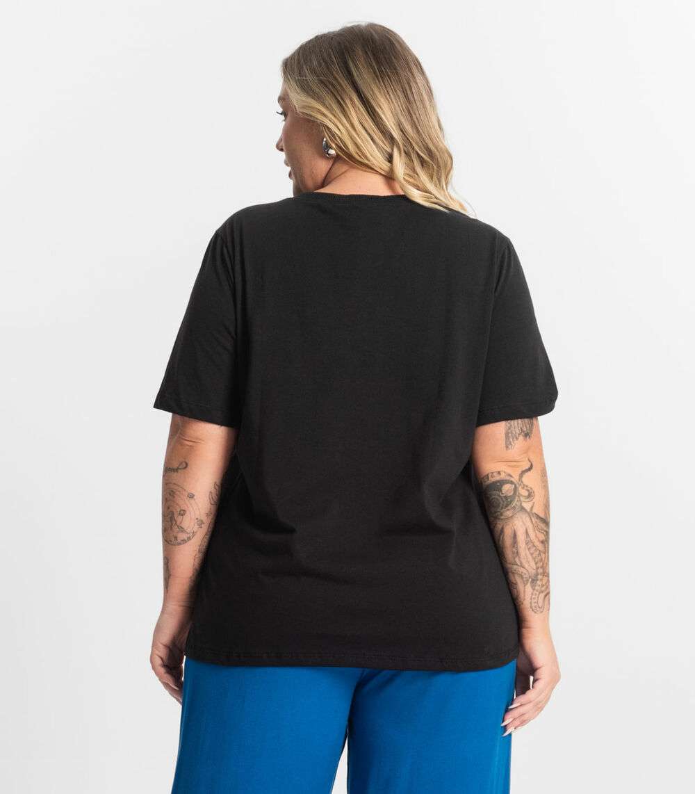 Camiseta Meia Malha Plus Size Secret Glam Preto