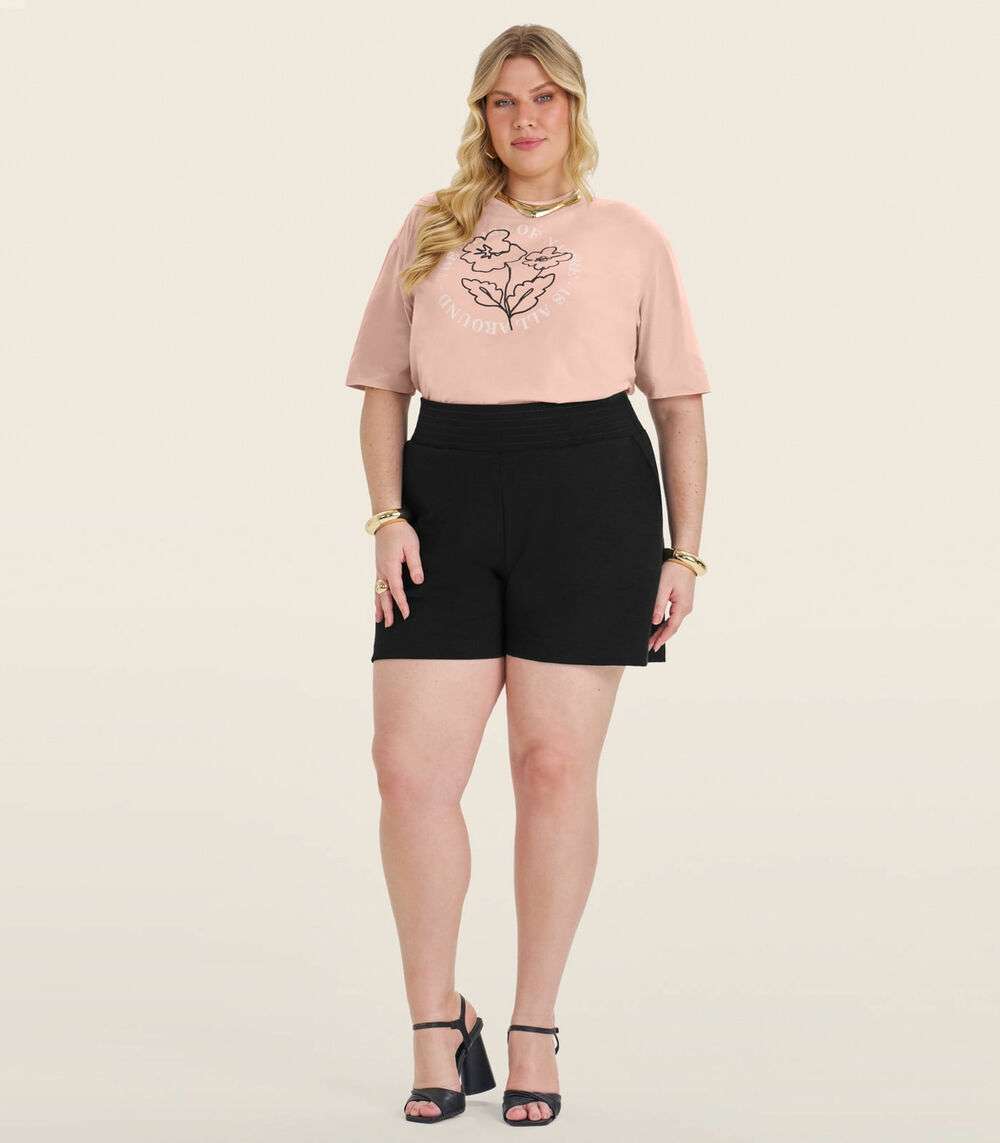 Camiseta Plus Size em Meia Malha Secret Glam Rosa