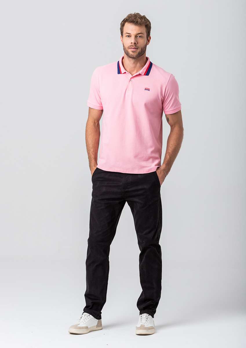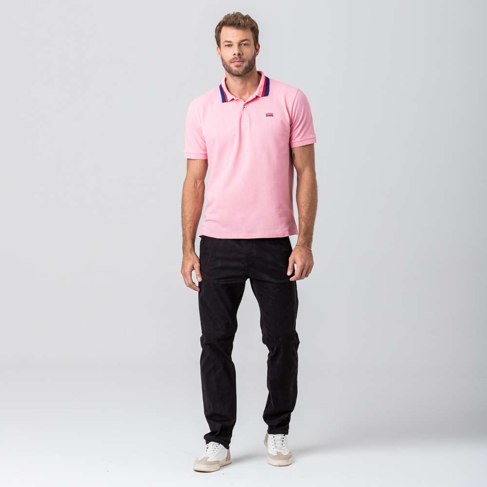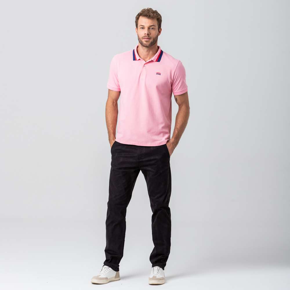 Polo masculina modelo básica confeccionada em tecido algodão e poliéster. Possui gola dobrável, fechamento por botões no entremeio, manga curta acabamento e costura no tom.REF:45344