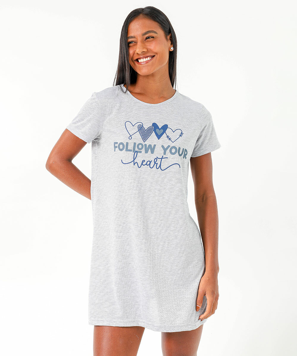 Camisola Estampa Coração Manga Curta Marisa Cinza