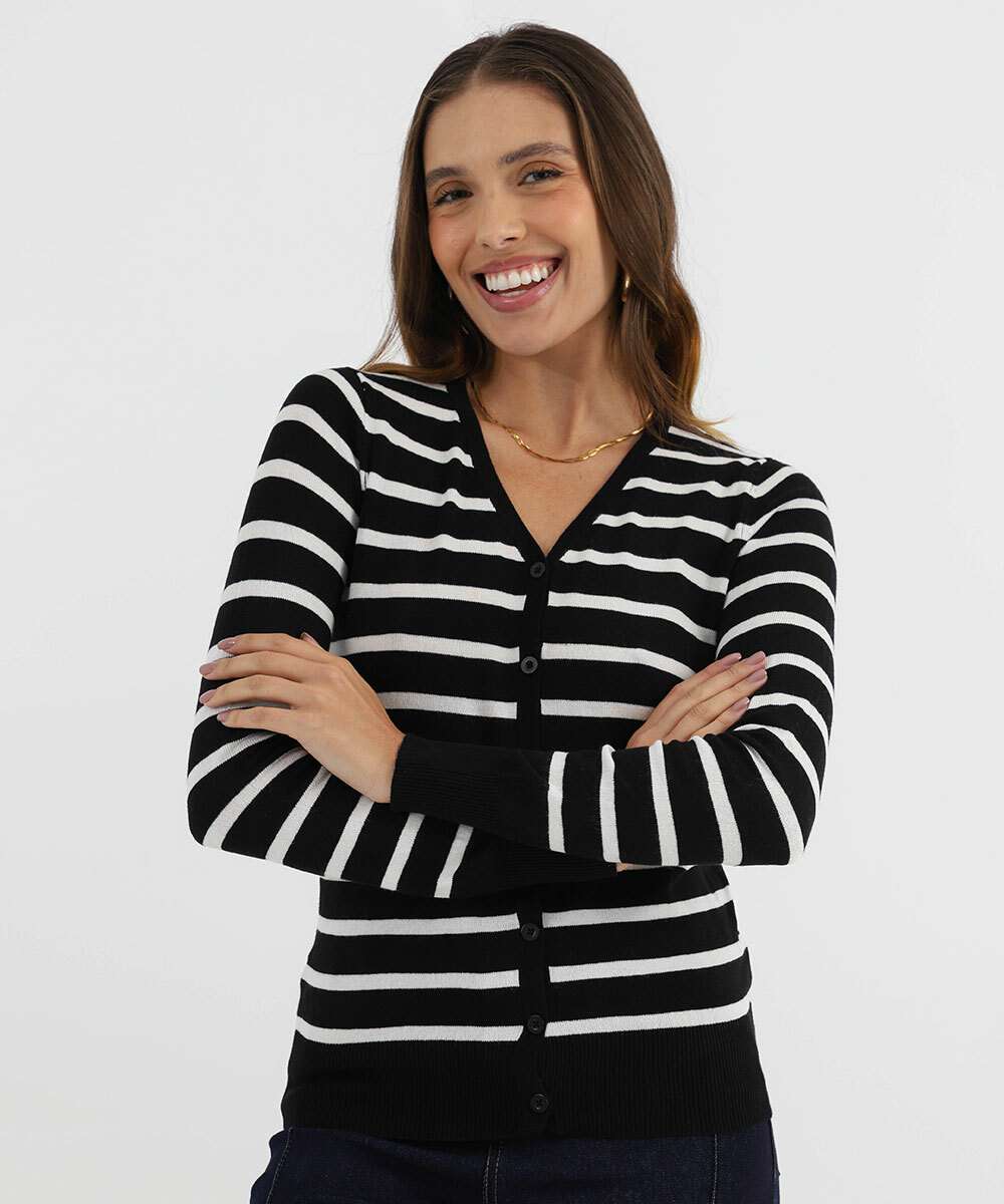 Cardigan Feminino Botões Listrado Marisa Preto