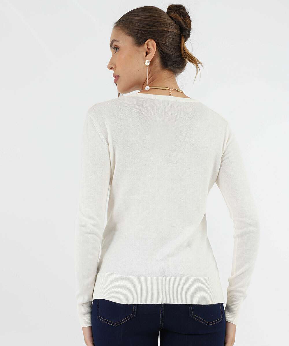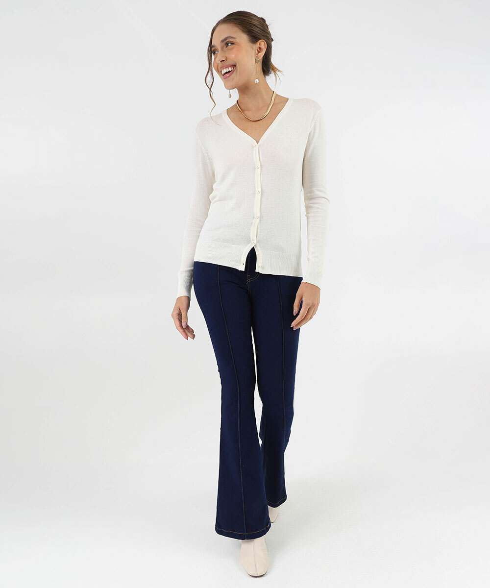 Cardigan Feminino Botões Pérolas Sintéticas Marisa Off White