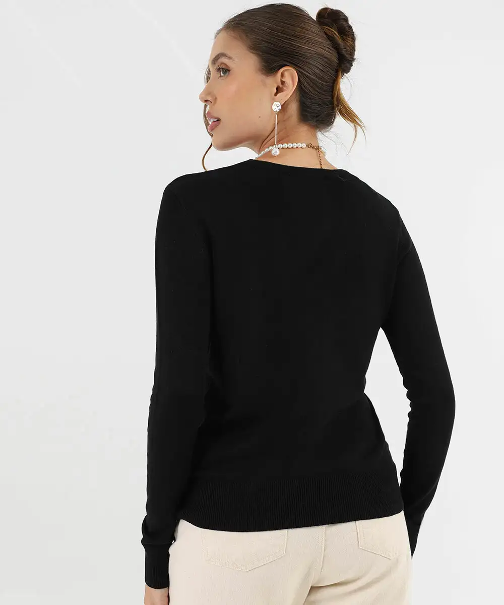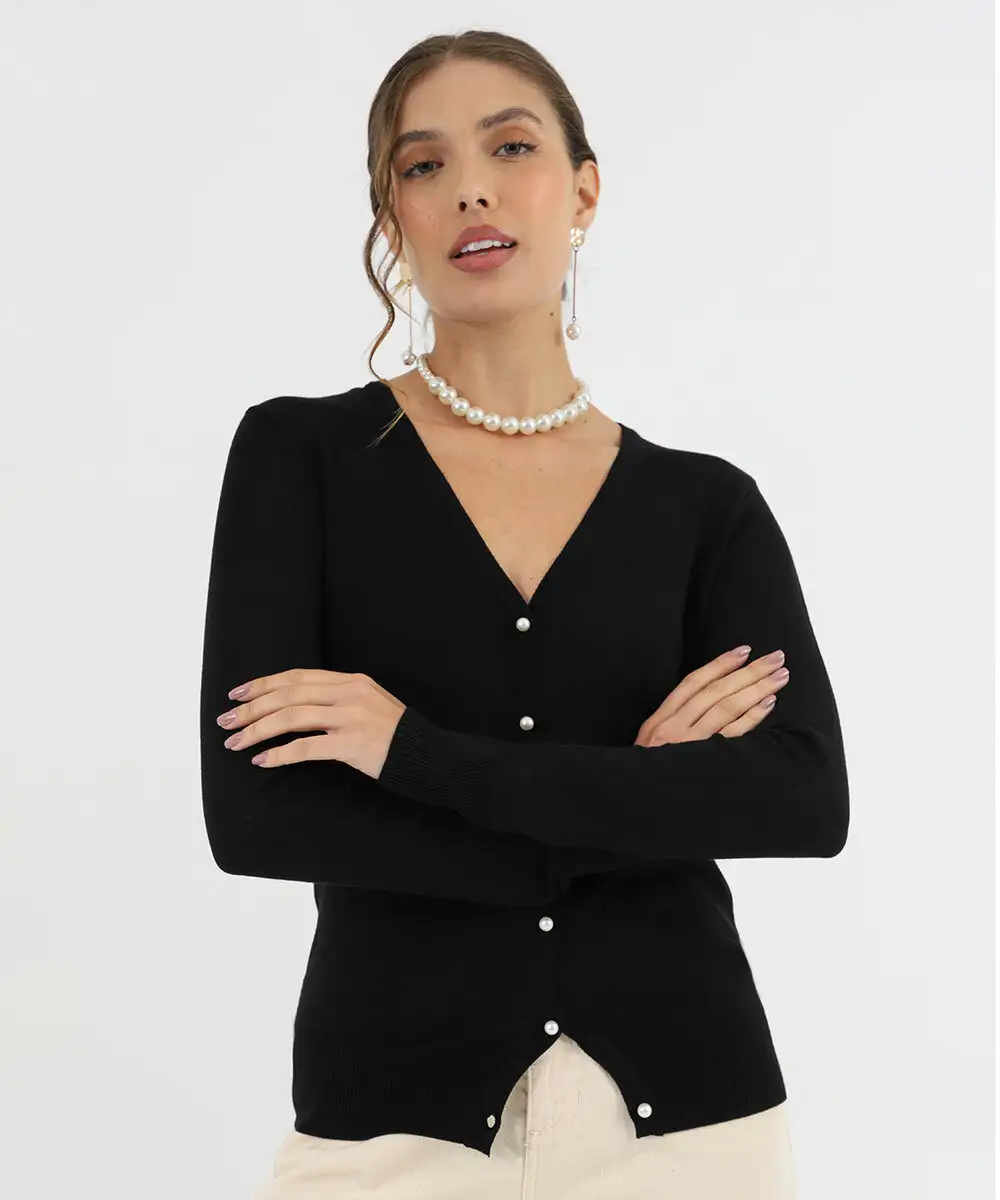 Cardigan Feminino Botões Pérolas Sintéticas Marisa Preto