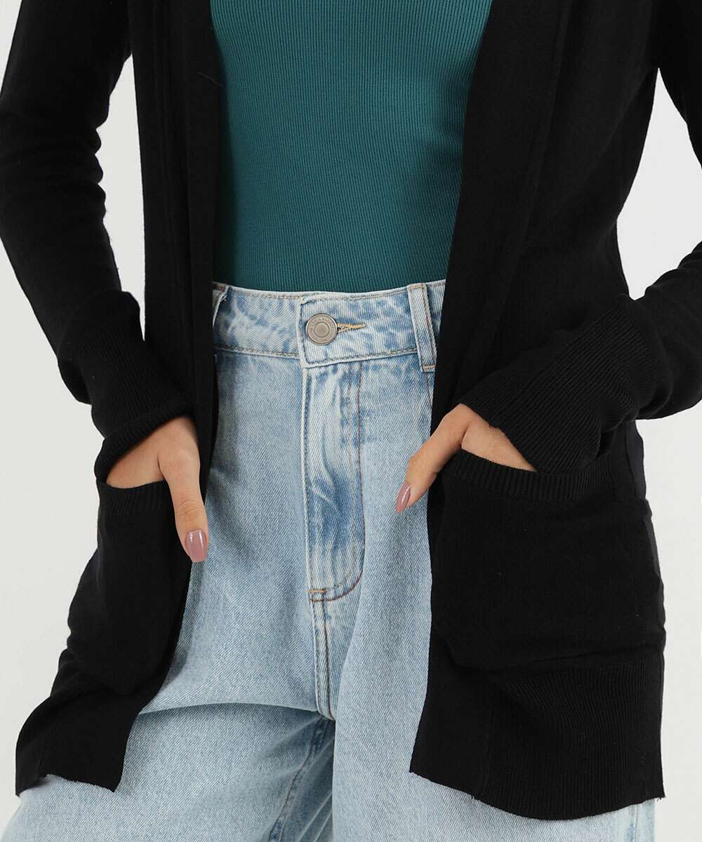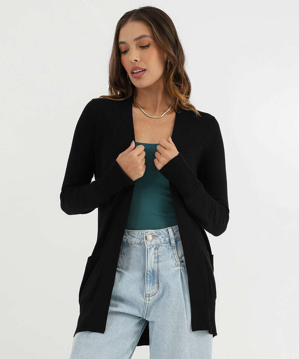 Cardigan Feminino Tricô Alongado Marisa Preto