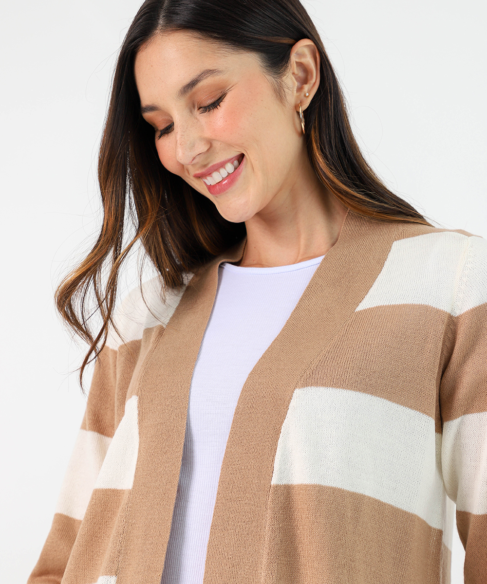 Cardigan Feminino Tricô Listrado Alongado Marisa Marrom