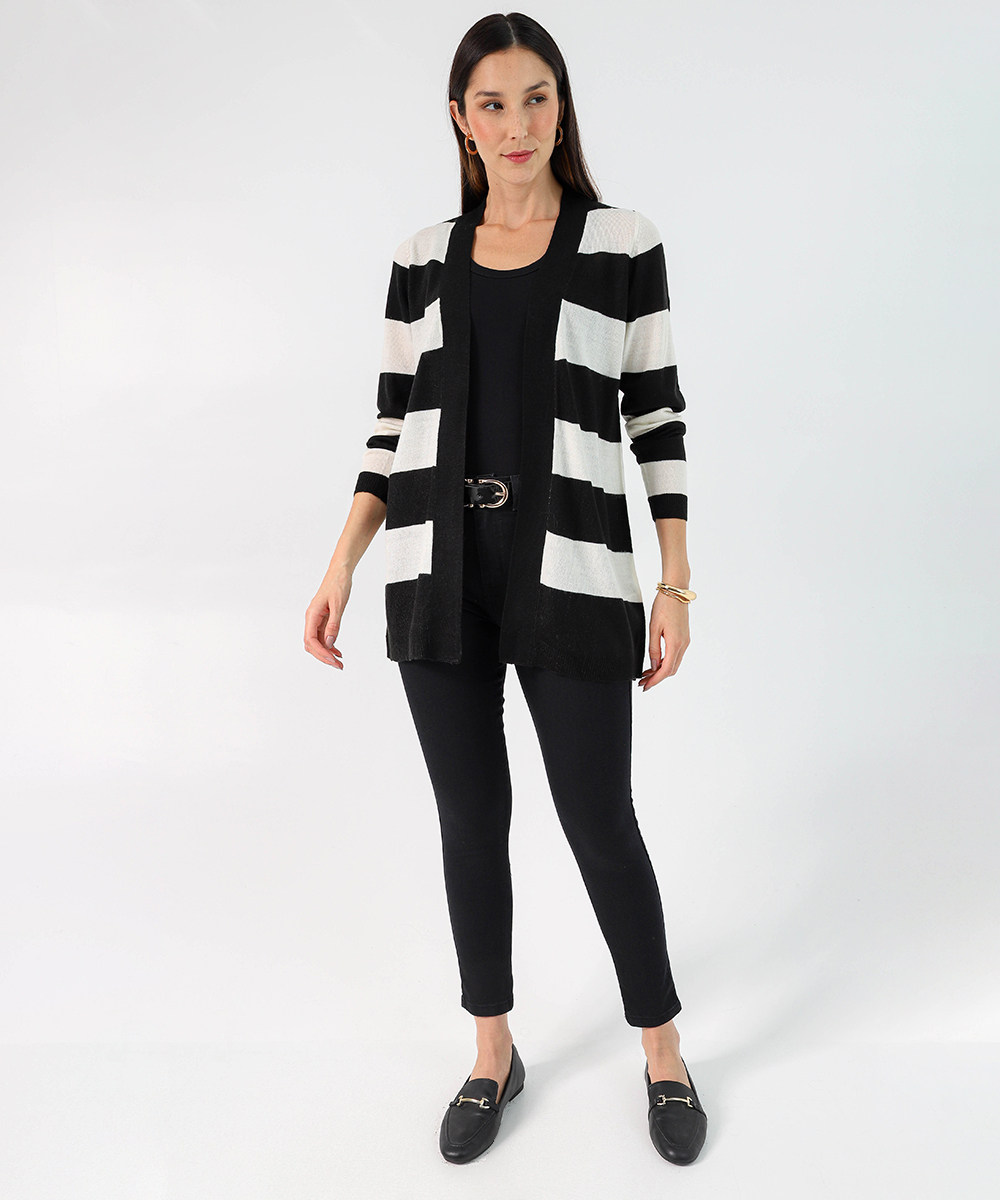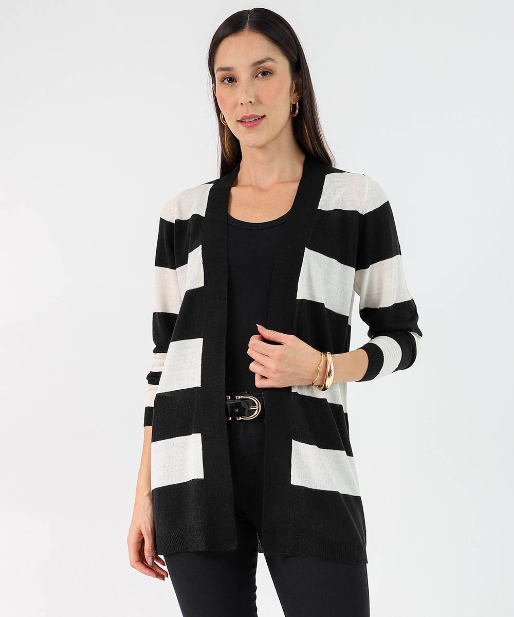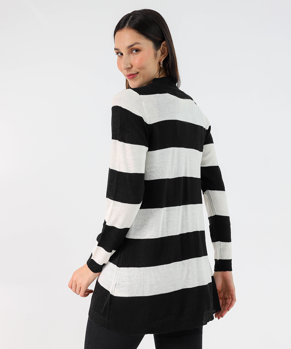 Cardigan Feminino Tricô Listrado Alongado Marisa Marrom