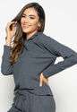 Casaco Comfy Malha Canelada Com Capuz Grafite