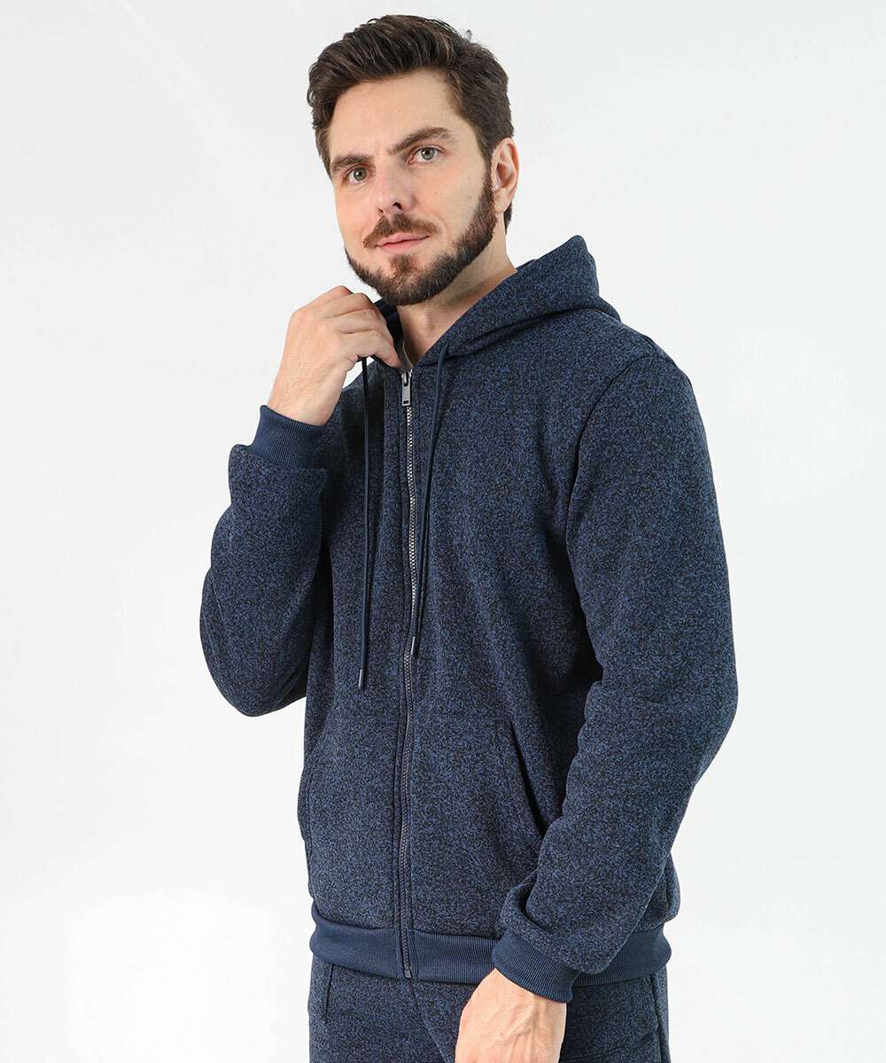 Casaco Masculino Moletom Fitness Capuz Marisa Azul