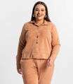 Casaco Plus Size Feminino Em Suede Secret Glam Marrom
