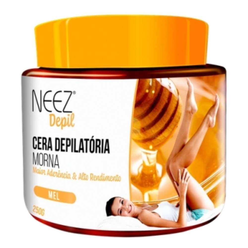 Cera Depilatória Neez Morna Mel 250gA Cera Depilatória Neez Morna Mel 250g é a solução perfeita para uma depilação suave e eficaz. Formulada com ingredientes que hidratam e acalmam a pele, ela proporciona uma experiência de depilação menos dolorosa e mais confortável. Indicações:Indicada para todos os tipos de pele, especialmente para aquelas mais sensíveis. Ideal para depilar áreas como pernas, braços e buço. Tecnologia:Mel: Rico em propriedades hidratantes, ajuda a suavizar a pele durante o processo de depilação.Cera Morna: Facilita a adesão ao pelos, permitindo uma remoção mais eficiente e menos agressiva.Benefícios:Depilação eficaz: Remove os pelos pela raiz, garantindo uma pele lisinha por mais tempo.Hidratação: O mel ajuda a manter a umidade da pele, evitando ressecamento.Menos dor: A temperatura morna da cera proporciona um conforto maior durante a aplicação.Modo de uso:Aqueça a cera até que atinja uma temperatura morna.Aplique uma camada uniforme na direção do crescimento dos pelos.Espere alguns segundos e retire rapidamente na direção contrária.Limpe a pele com um algodão umedecido após a depilação.Resultado:Pele macia, hidratada e livre de pelos, pronta para brilhar! Precauções:Mantenha fora do alcance de crianças. Evite o contato com áreas irritadas ou feridas. Em caso de irritação, suspenda o uso e consulte um médico. Composição:Cera de abelha, mel, resina sintética, óleo mineral, fragrância. Informações Adicionais: Produto não testado em animais. Número do processo ANVISA: 25351.158982/2018-61. Imagens meramente ilustrativas.