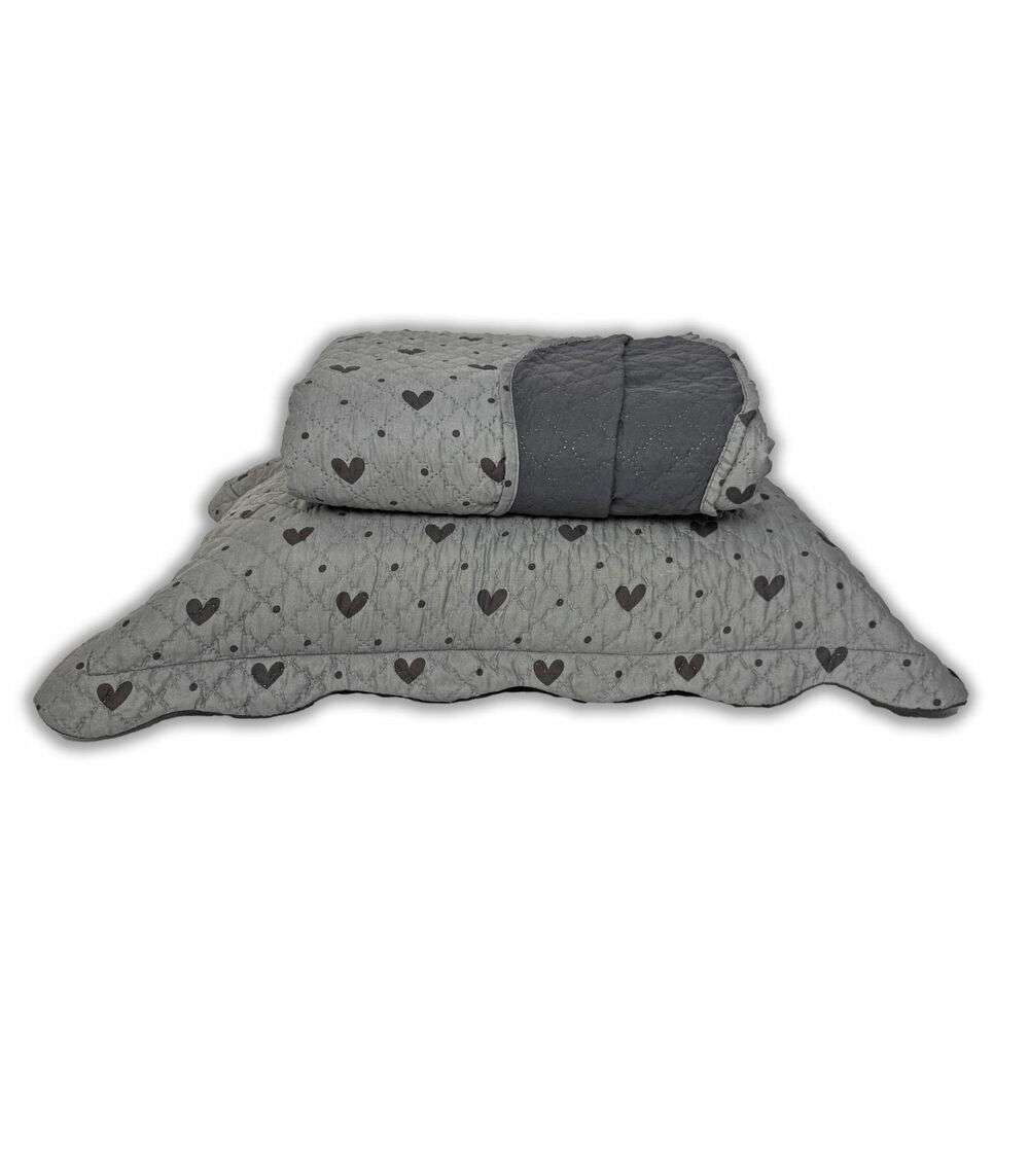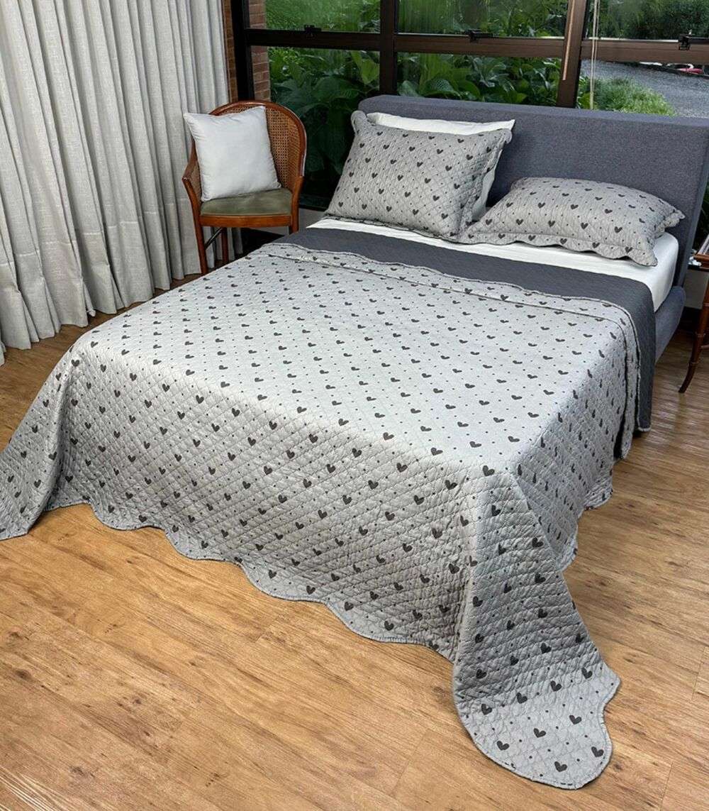 Cobreleito King Corações Dupla Face Lepper Cinza
