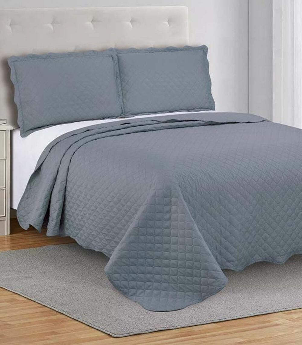 Colcha Grid Solteiro Camesa Cinza