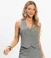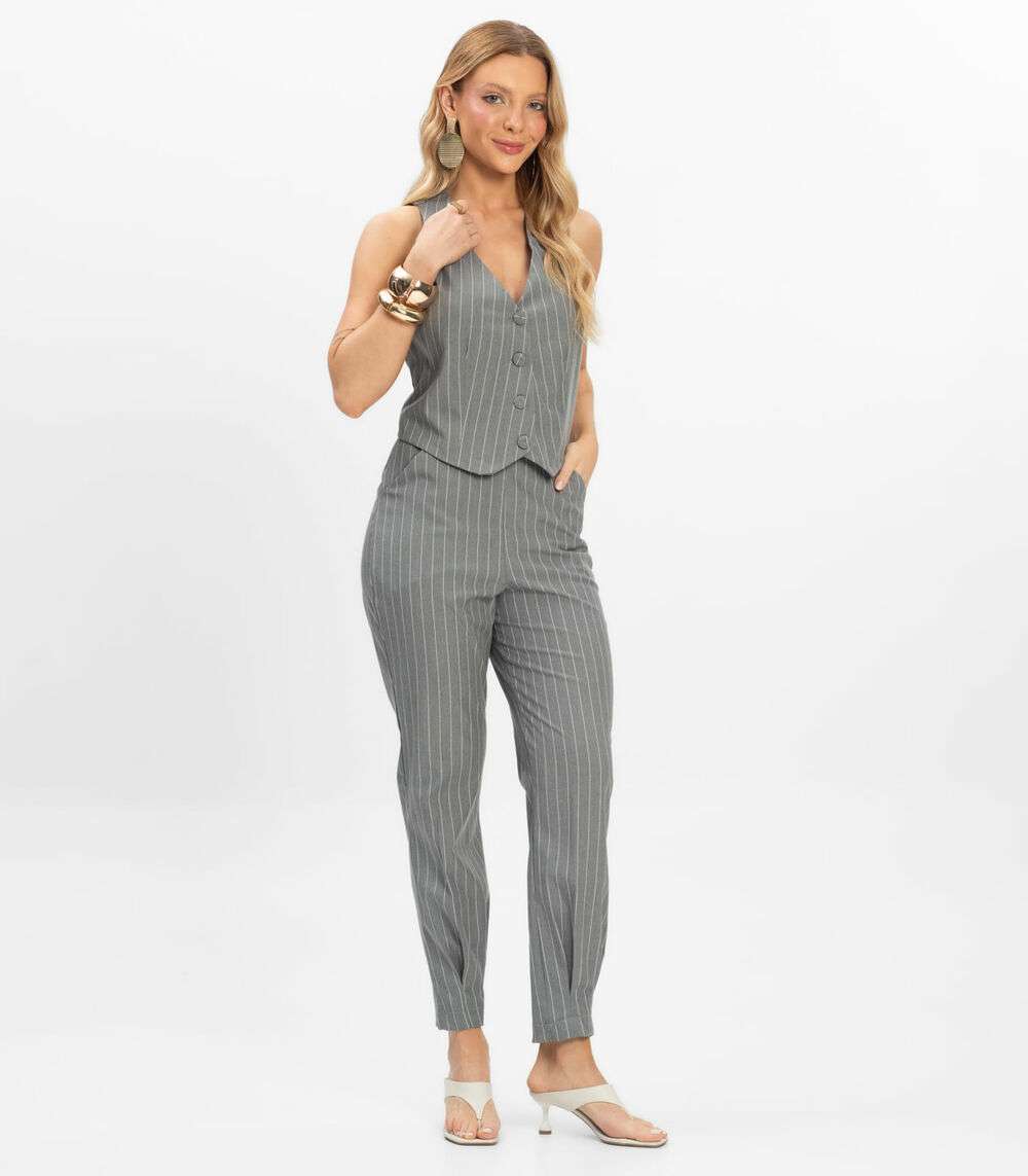 Colete Feminino Em Alfaiataria Risca Giz Toda Nua Cinza