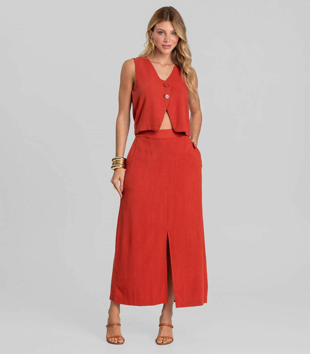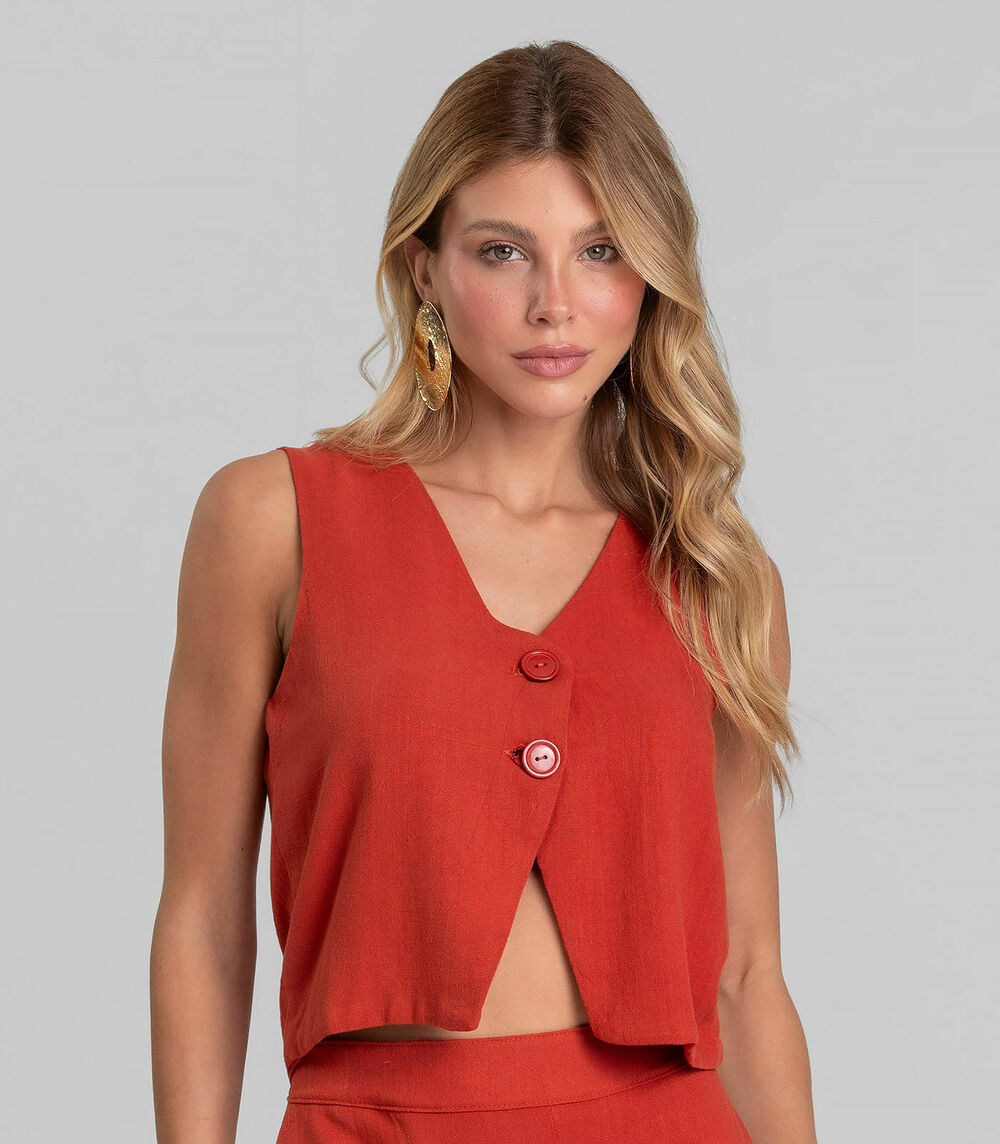 Colete Feminino Em Tecido Linho Dianna Laranja