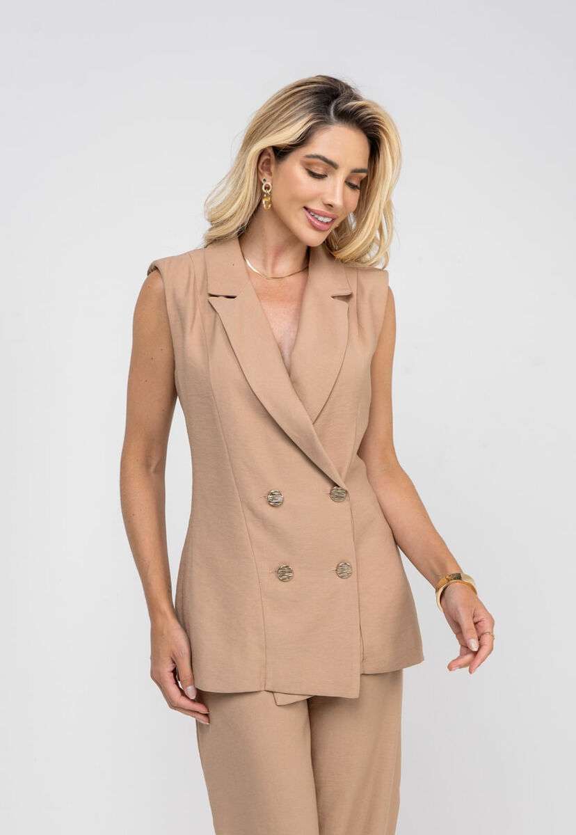 Conjunto Alfaiataria Wide Leg e Colete Bege Salvatore