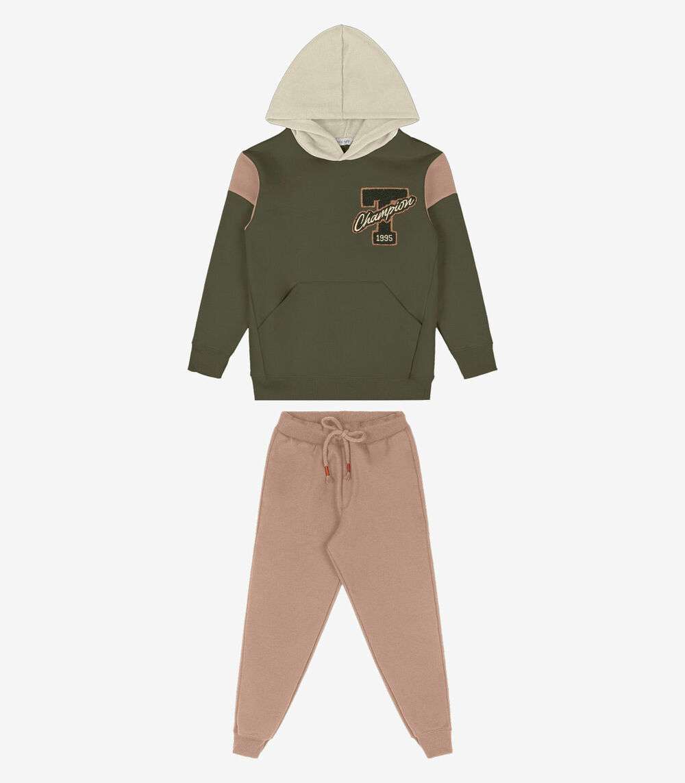 O Conjunto Blusão com Capuz e Calça Trick Nick, confeccionado em moletom, é ideal para dias frescos, combinando conforto e estilo. O blusão conta com capuz e bolso, além de um delicado bordado chenille que dá um toque moderno. A calça, com cadarço funcional na cintura, proporciona ajuste perfeito e praticidade. O conjunto oferece liberdade de movimento, sendo perfeito para o dia a dia das crianças. Confortável, versátil e cheio de charme, é uma peça essencial no guarda-roupa infantil.
