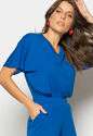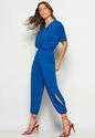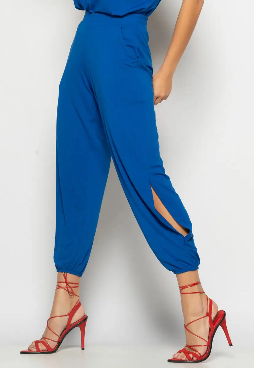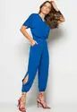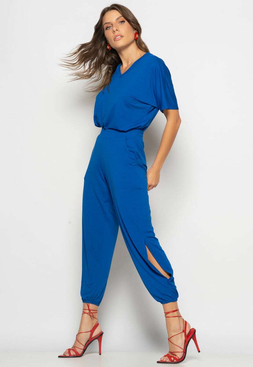 Conjunto Blusa Ampla Gola V e Calça Jogger Fenda Malha Azul Royal Salvatore