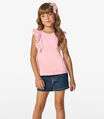 Conjunto Feminino Infantil Blusa Com Shorts Trick Nick composto por blusa em meia malha e shorts jeans. A blusa possui babados franzidos na frente com acabamento delicado, decote e cavas em tecido confortável e barra com costura dupla. O shorts tem cintura com passantes, botão frontal, bolsos funcionais e barra dobrada, garantindo um visual moderno e prático para o dia a dia das meninas. Ideal para compor looks confortáveis e estilosos.
