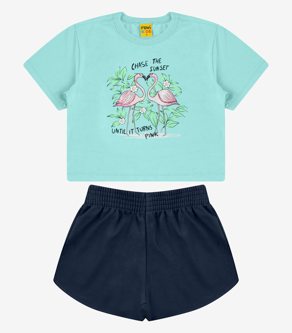 Conjunto Blusa com Shorts Meia Malha Rovi Kids Azul
