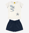 Conjunto Blusa Com Shorts Meia Malha Rovi Kids Bege