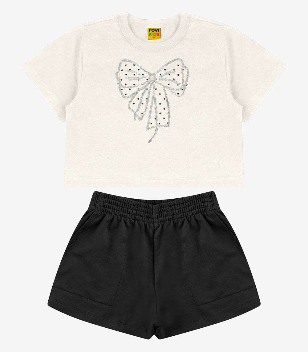 Conjunto Blusa com Shorts Meia Malha Rovi Kids Bege