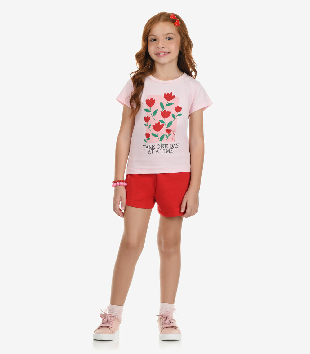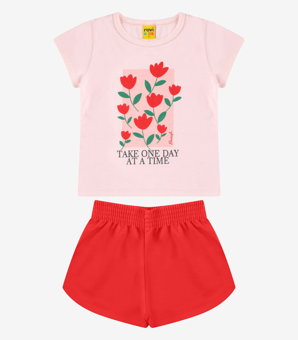 Conjunto Blusa com Shorts Meia Malha Rovi Kids Rosa
