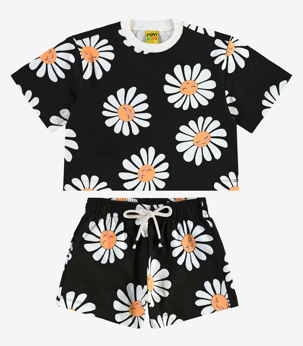 Confeccionado em Meia Malha e Moletinho Basic, o Conjunto Blusa Com Shorts Rovitex Kids garante conforto e estilo para o dia a dia. A blusa apresenta gola redonda contrastante, cava deslocada e modelagem quadrada, proporcionando um caimento moderno e despojado. O shorts conta com cós virado com elástico rebatido e cadarço decorativo, garantindo ajuste perfeito e um toque estiloso. Ambos possuem a mesma estampa, criando um visual harmonioso e cheio de personalidade.