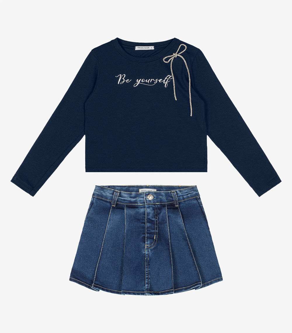 Conjunto Blusa Com Shorts Saia Jeans Trick Nick Azul