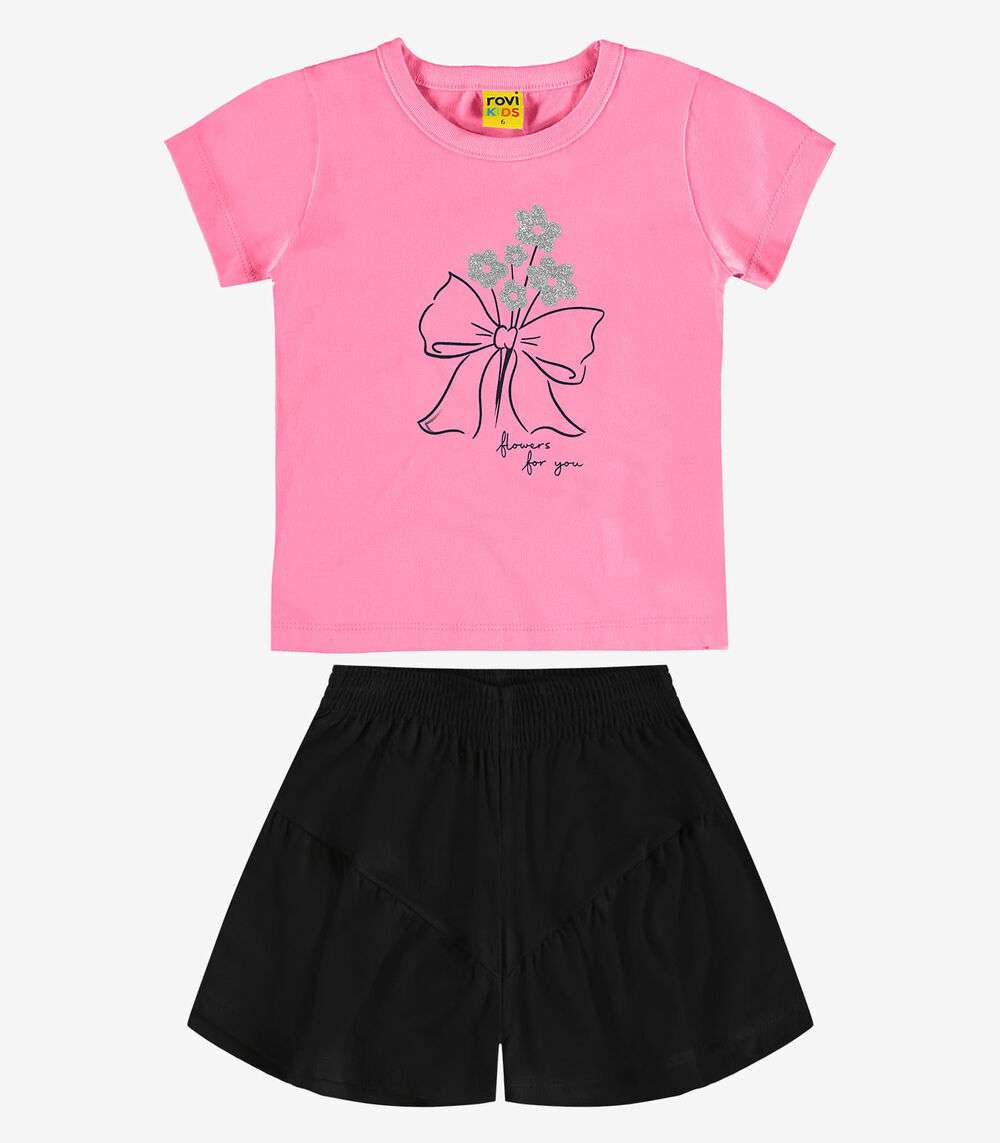 Conjunto Blusa e Shorts MeiaMalha ViscoMaquinetada Rosa