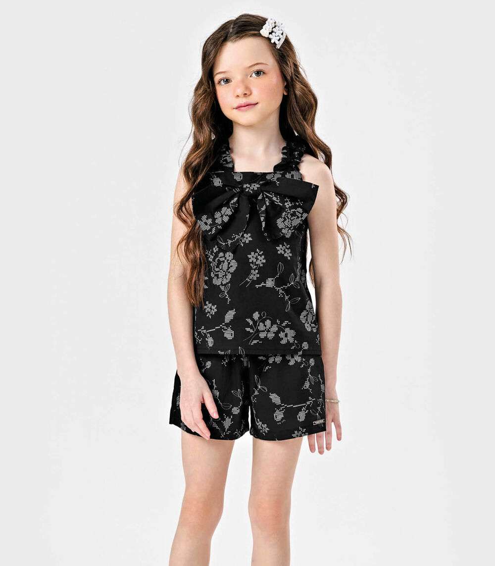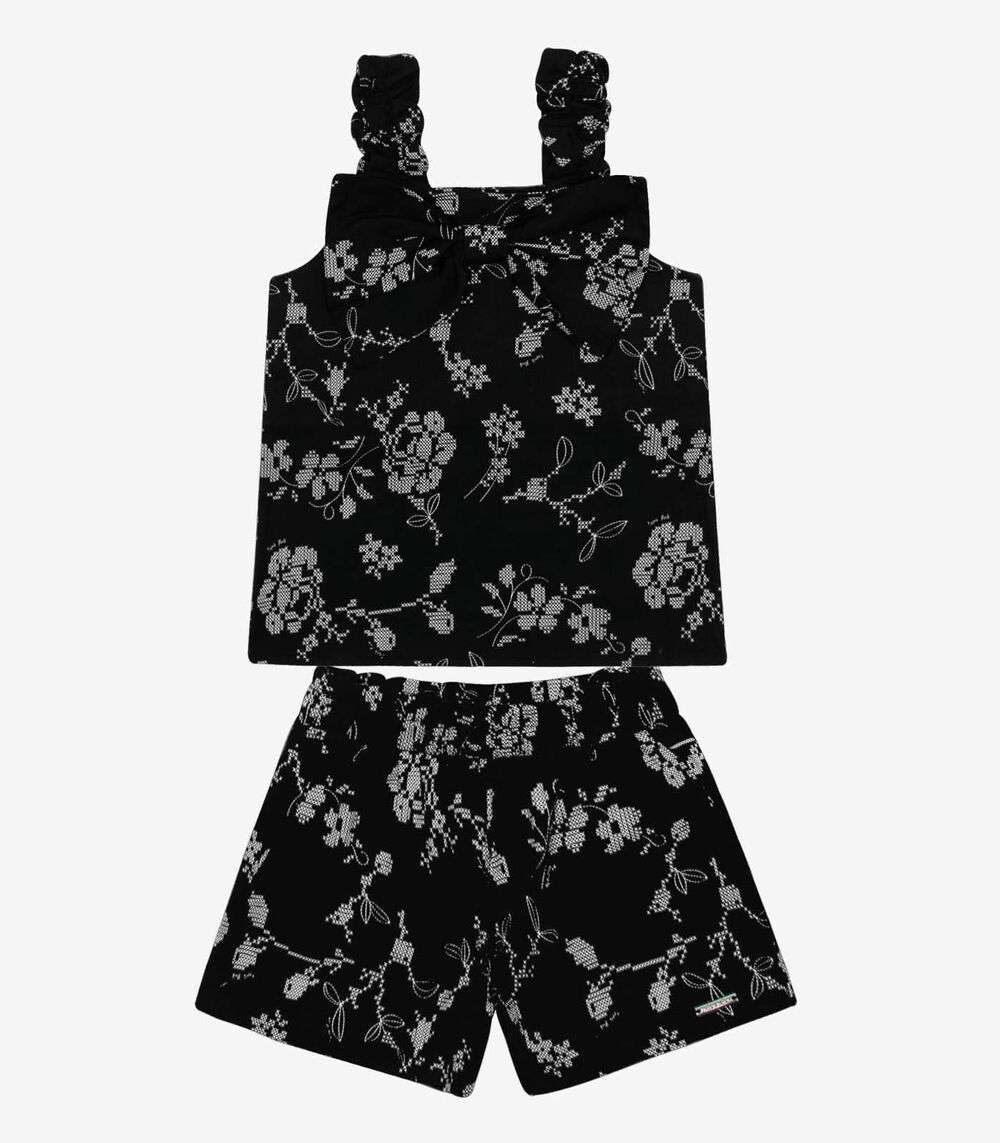 Conjunto Blusa E Shorts Popeline Floral Trick Nick Preto
