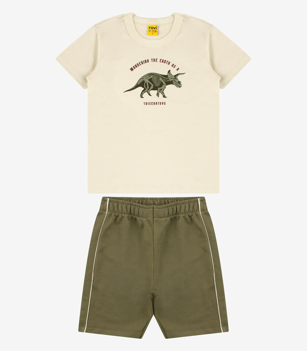 Conjunto Camiseta com Bermuda Masculino Rovi Kids Bege