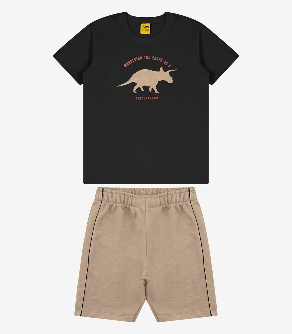 Conjunto Camiseta com Bermuda Masculino Rovi Kids Preto