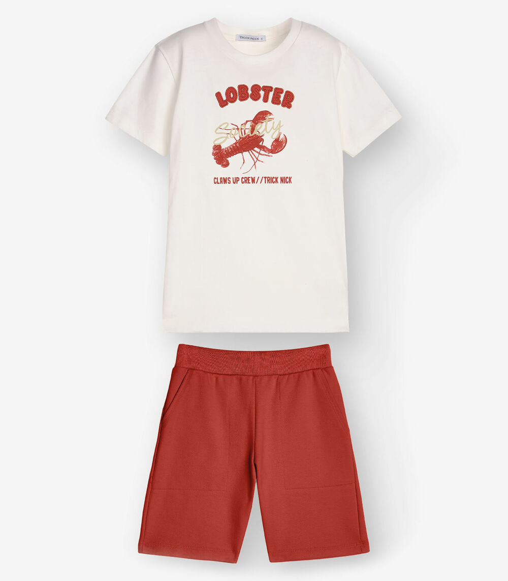 Conjunto Camiseta com Bermuda Menino Trick Nick Bege