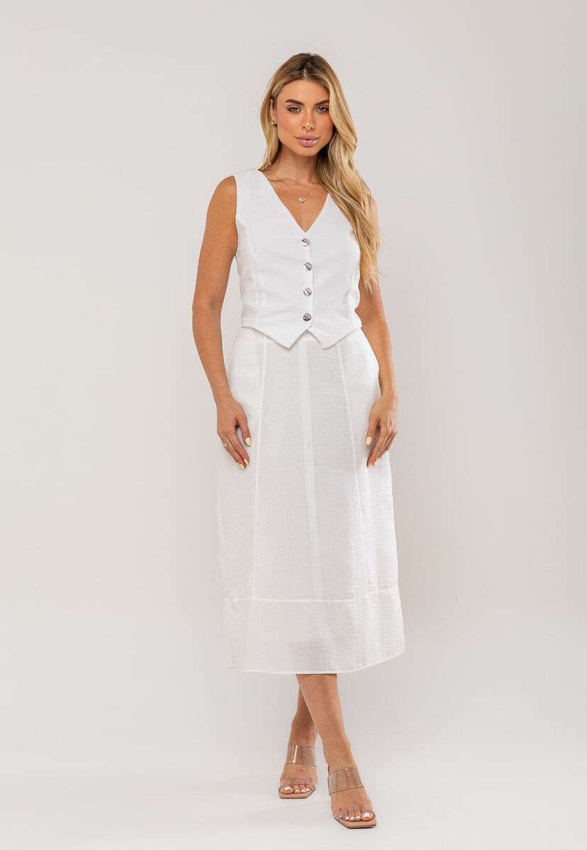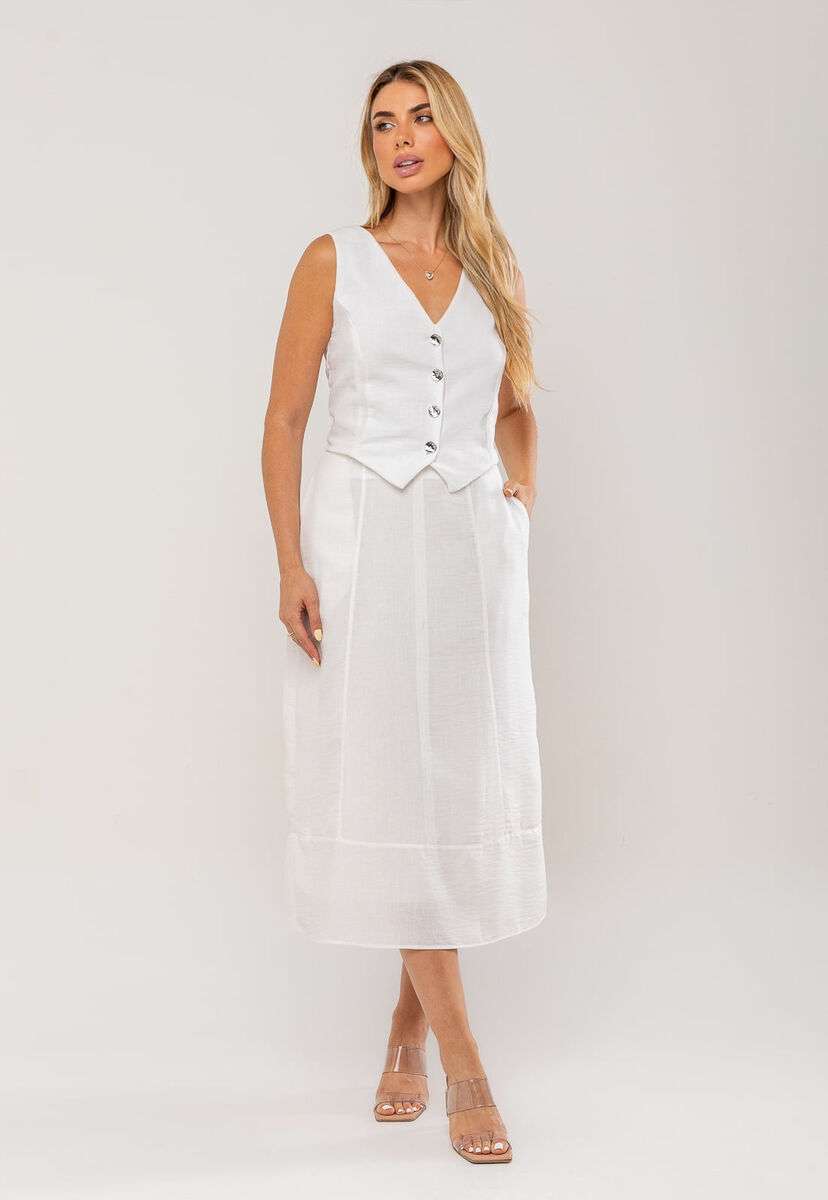 Conjunto Com Colete e Saia Midi Branco Salvatore
