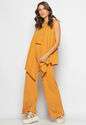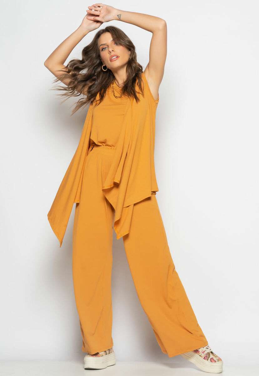 Conjunto Com Kimono, Regata e Wide Leg Malha Caramelo Salvatore
