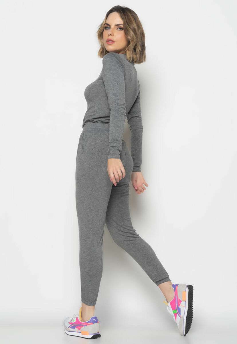 Conjunto Comfy Com Blusa Manga Longa e Jogger Recorte Malha Grafite