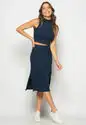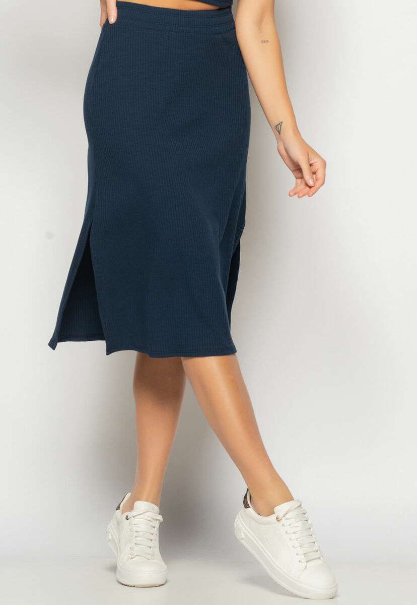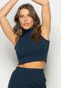 Conjunto Cropped Regata E Saia Midi Malha Canelada Marinho Salvatore