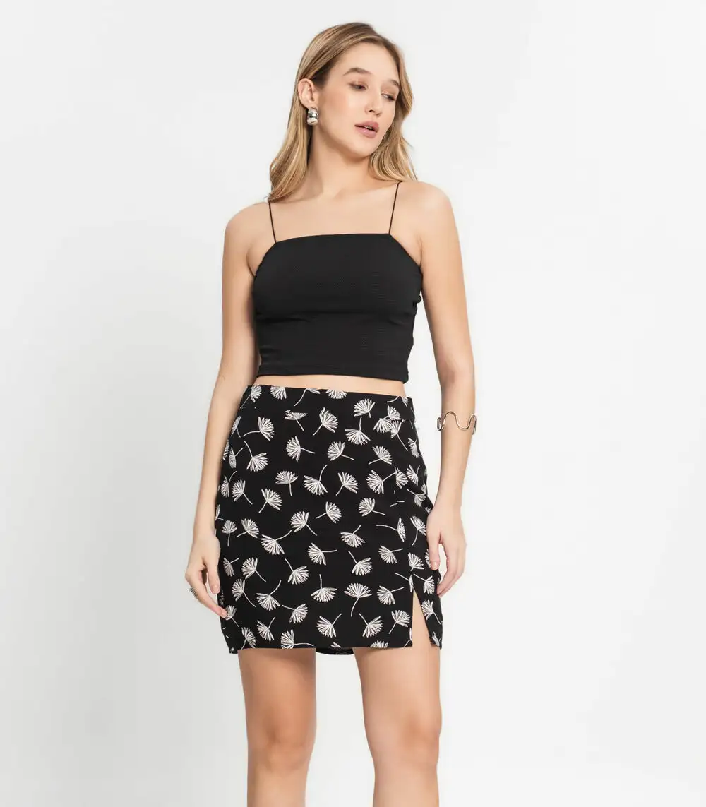 Conjunto Feminino Saia Estampada e Cropped Select Preto