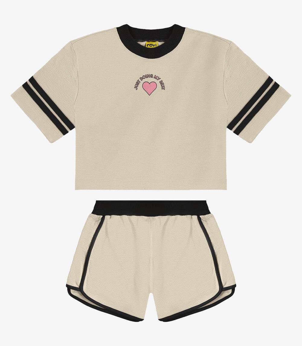 Conjunto Infantil Blusa Com Shorts Rovi Kids Bege