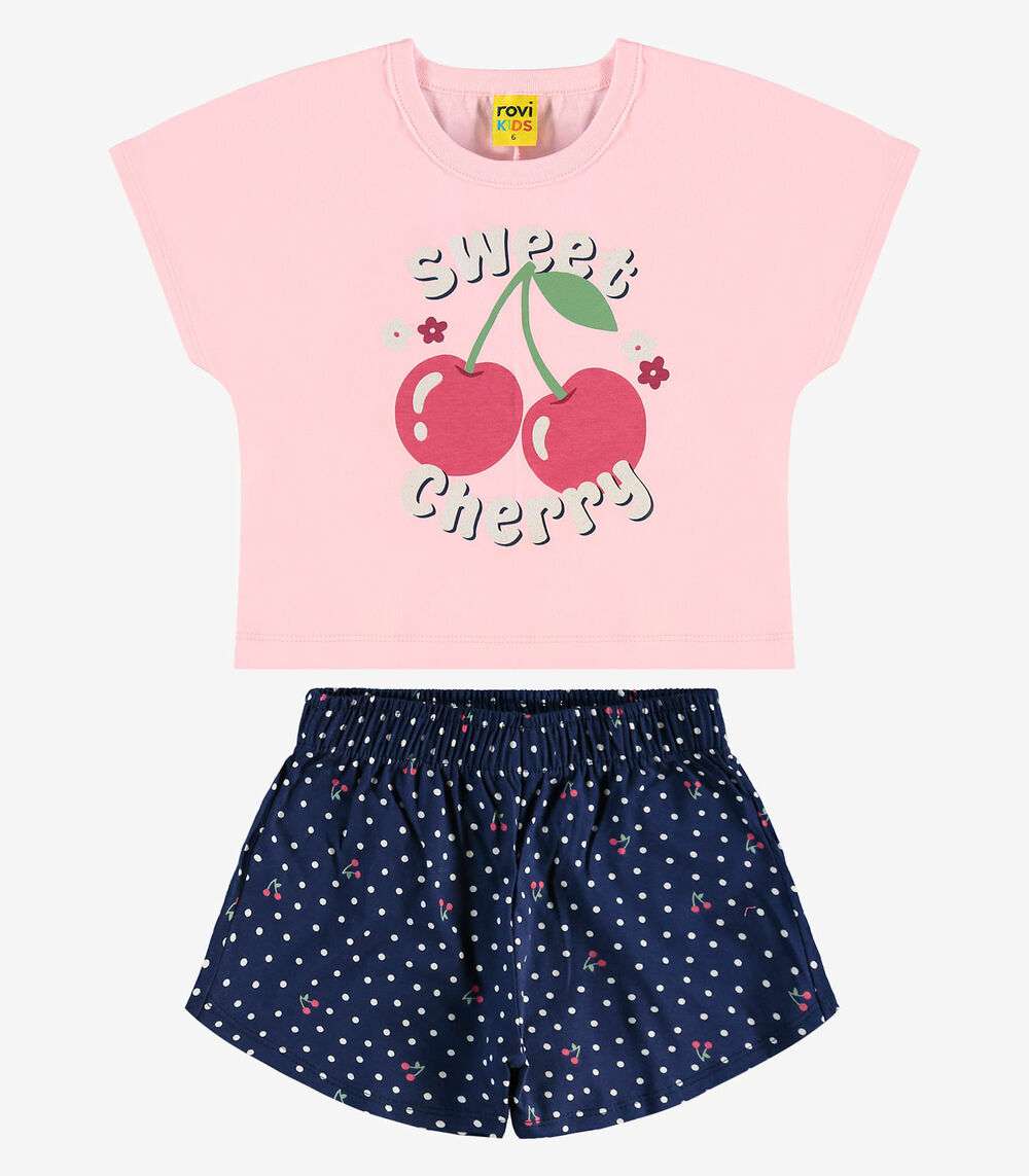 Conjunto Infantil Blusa Com Shorts Rovi Kids Rosa