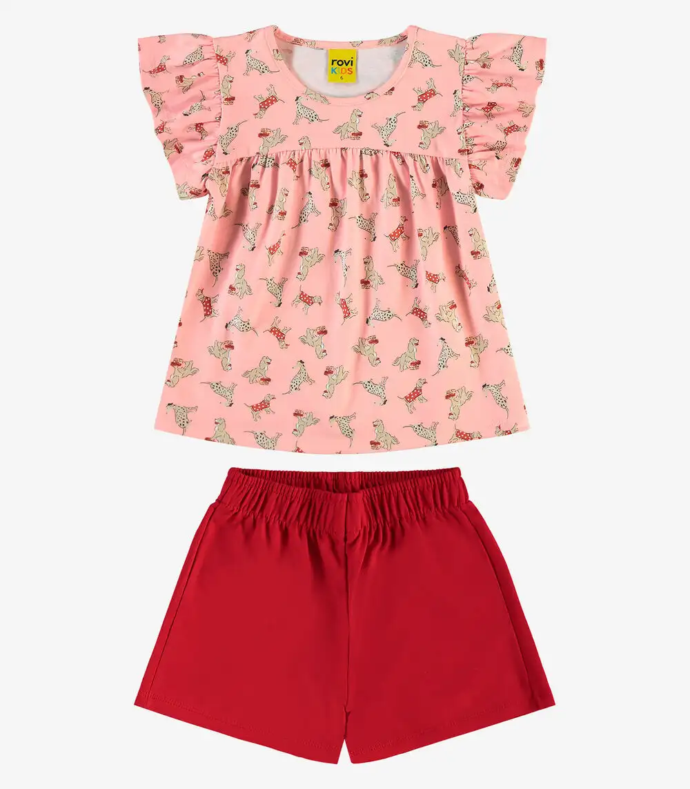 Conjunto Infantil Blusa Com Shorts Rovi Kids Rosa