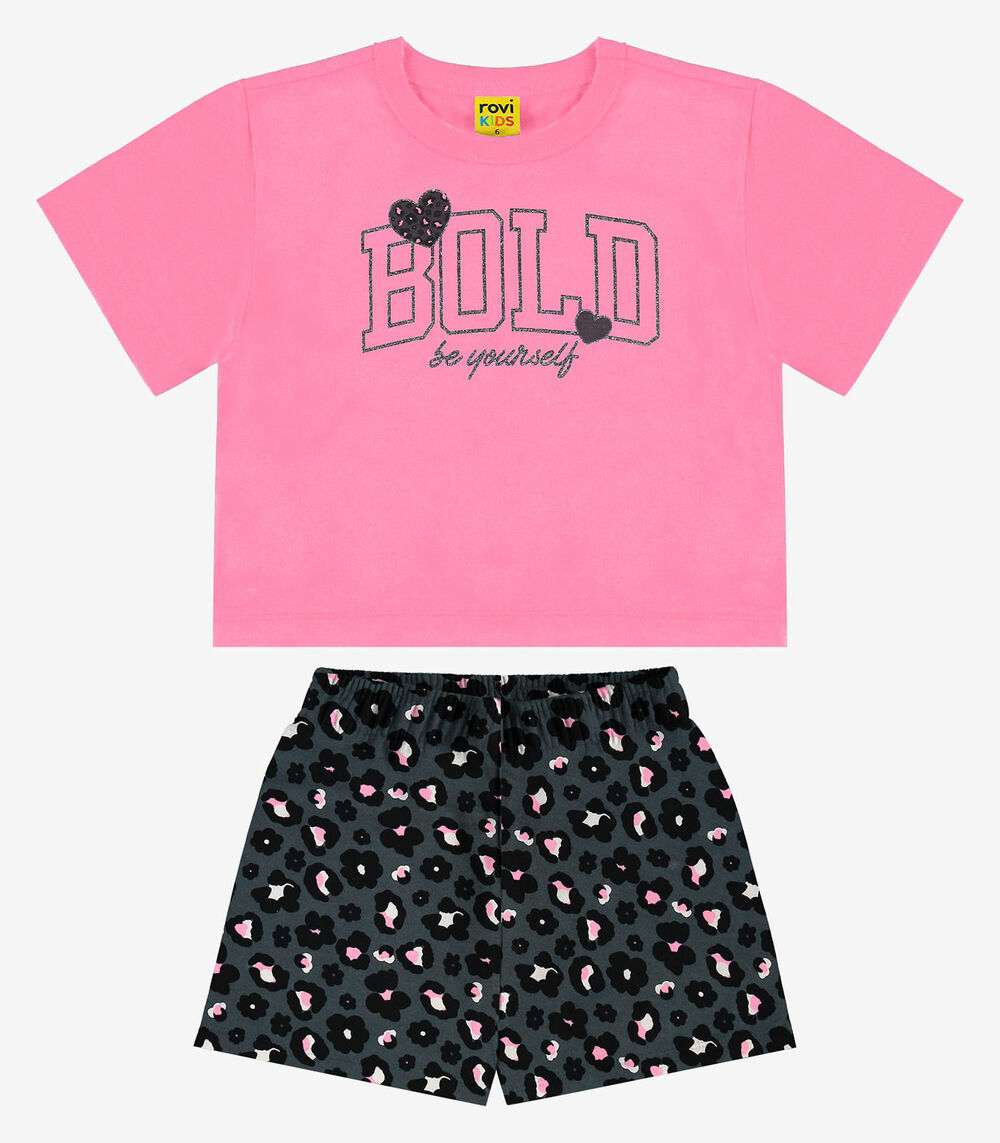 Conjunto Infantil Blusa Com Shorts Rovi Kids Rosa