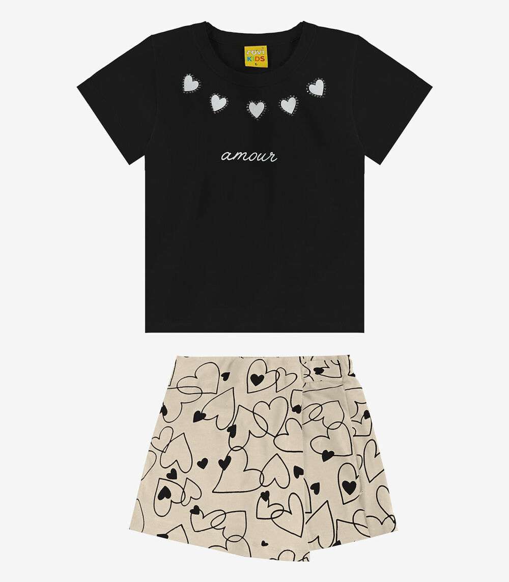 Conjunto Infantil Blusa Com Shorts Saia Rovi Kids Preto