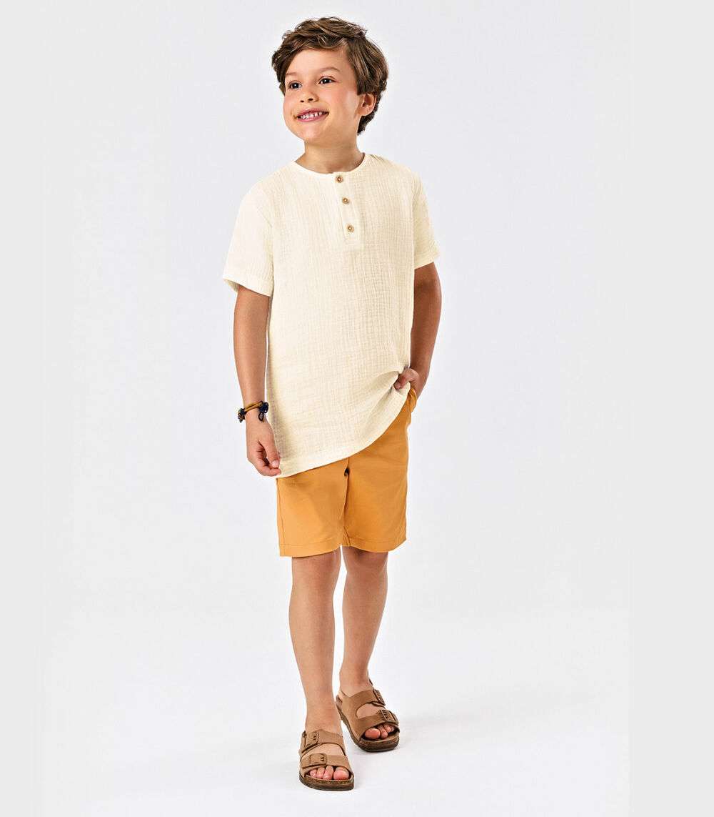 Conjunto Infantil Camisa Com Bermuda Trick Nick Bege