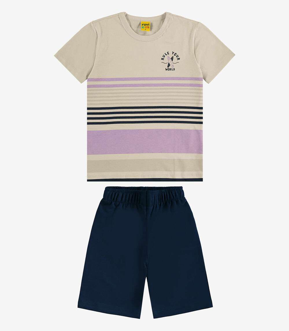 Conjunto Infantil Camiseta Com Bermuda Rovi kids Bege