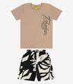 Conjunto Infantil Camiseta Com Bermuda Rovi Kids Marrom