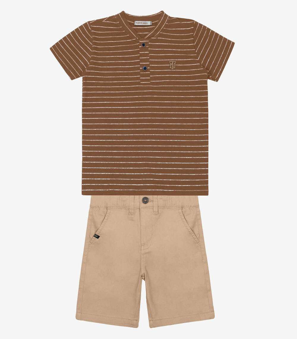 Conjunto Infantil Camiseta Com Bermuda Trick Nick Marrom