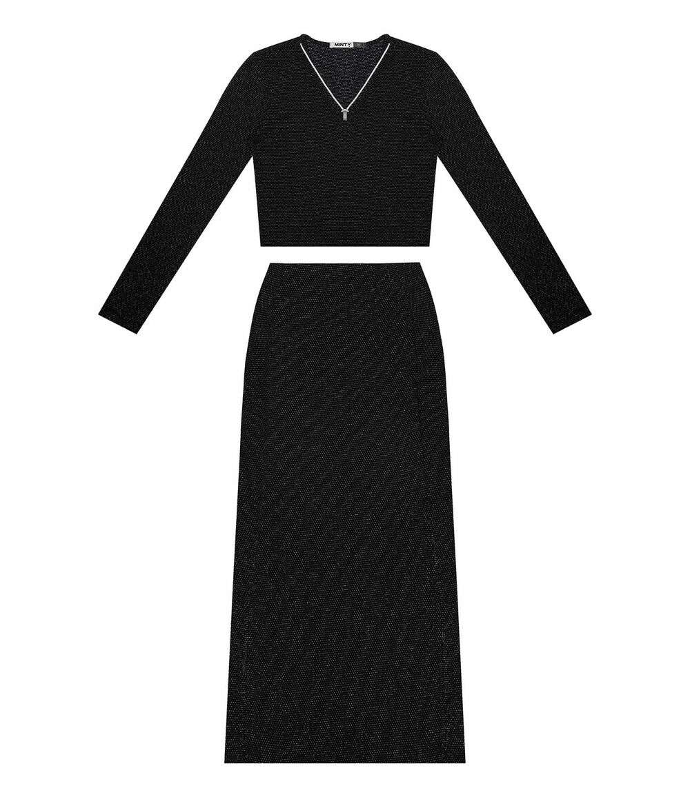 Conjunto Juvenil Blusa Com Saia Midi Minty Preto